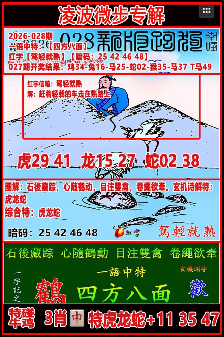 028期六合信箱紅字:駕輕就熟暗码:25-42-46-48