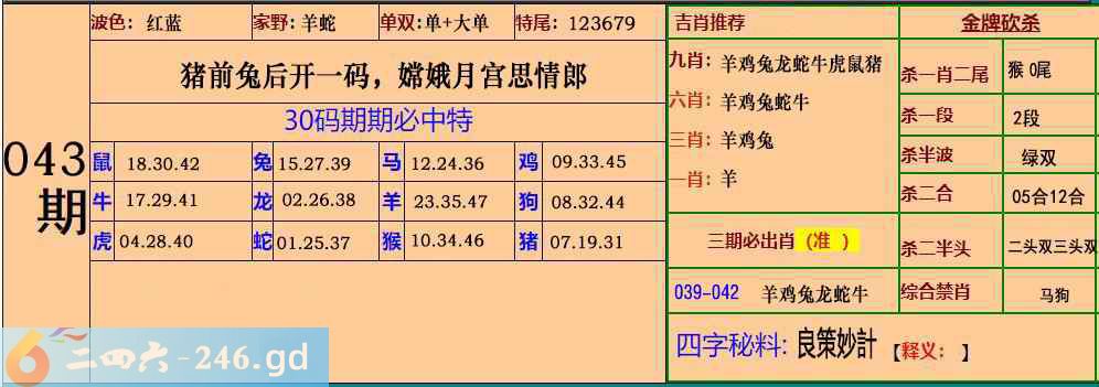043期:30码期期必中特