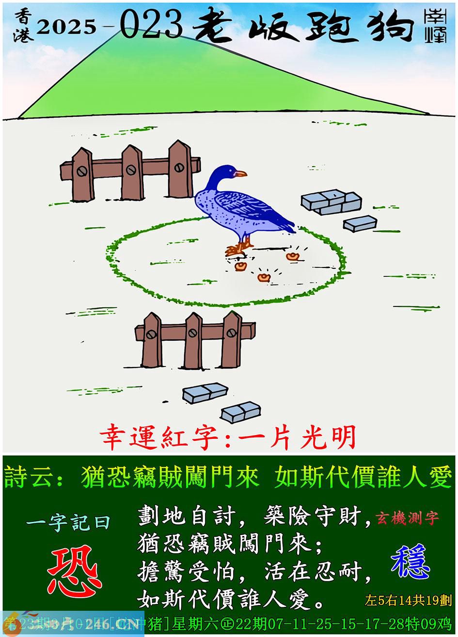 023期老版跑狗一字記之曰:【恐】 詩雲:猶恐竊賊闖門來,如斯代價誰人愛。