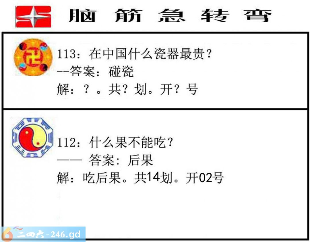 2025112期112期:脑筋急转弯