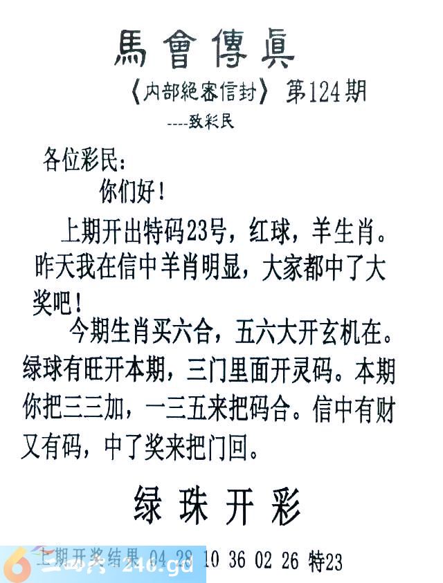 124期:首发推荐:≮馬會傳眞≯→(香港正版)