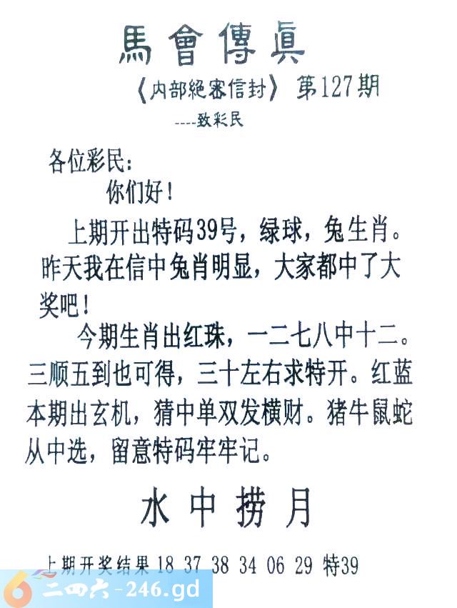 127期:首发推荐:≮馬會傳眞≯→(香港正版)