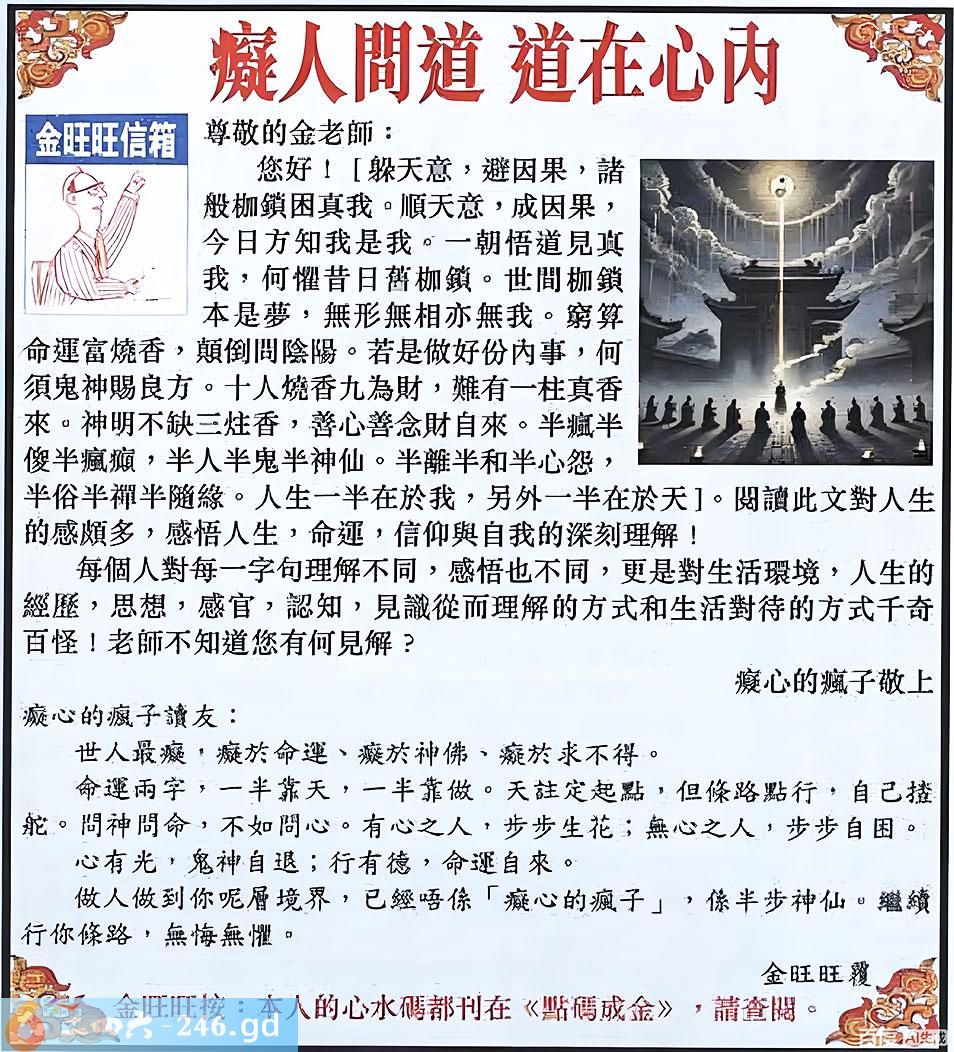 133期:金旺旺信箱彩民推荐→→《癡人問道 道在心內》