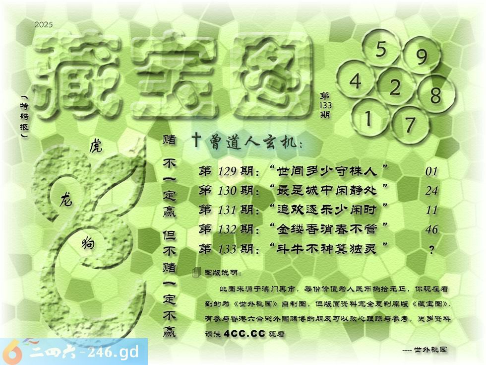 133期藏寶圖 新:斗牛不神箕独灵 老:轻舸帷恐东下迟 禁:牛 禁:0尾 玄機字:《弦》