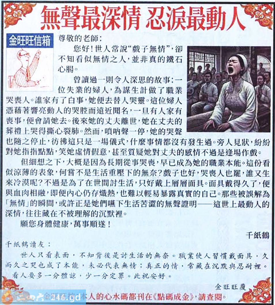 038期:金旺旺信箱彩民推荐→→《無聲最深情 忍淚最動人》
